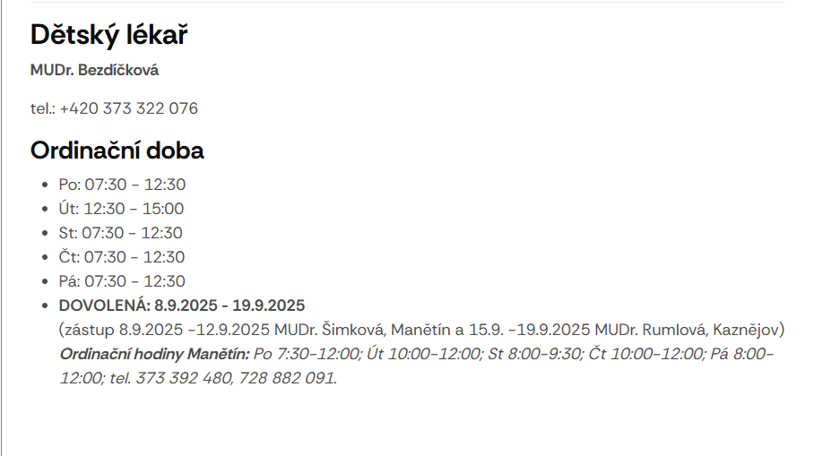 Dovolená Mudr Jitka Bezdíčková
