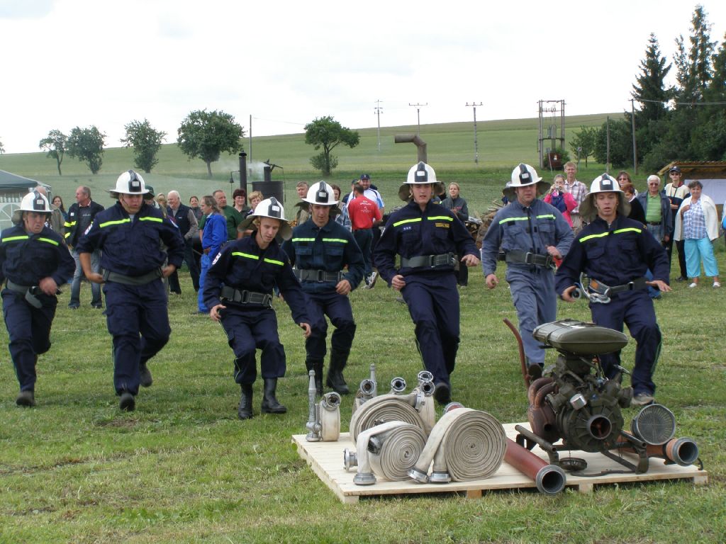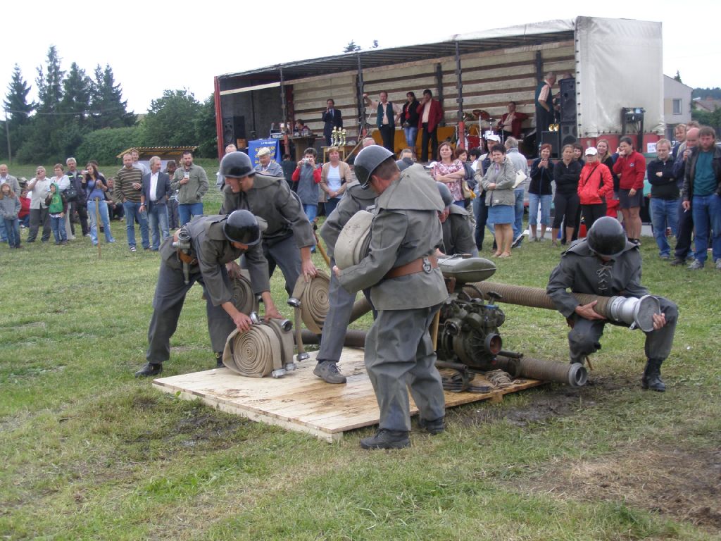 Hasičské závody s historickými PS 8 obohatili hasiči z Ondřejova, kteří předvedli hasičský útok nejen s historickou mašinou, hadicemi, ale i v historických kostýmech. Moc jim to slušelo.